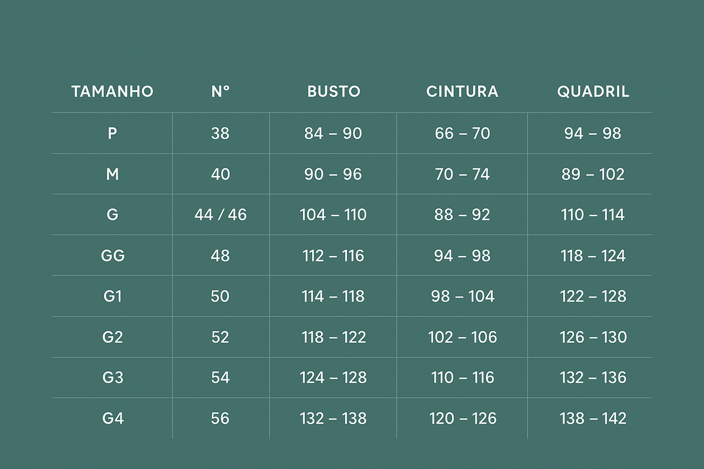 Tabela de medidas para qualquer peça de moda da loja!